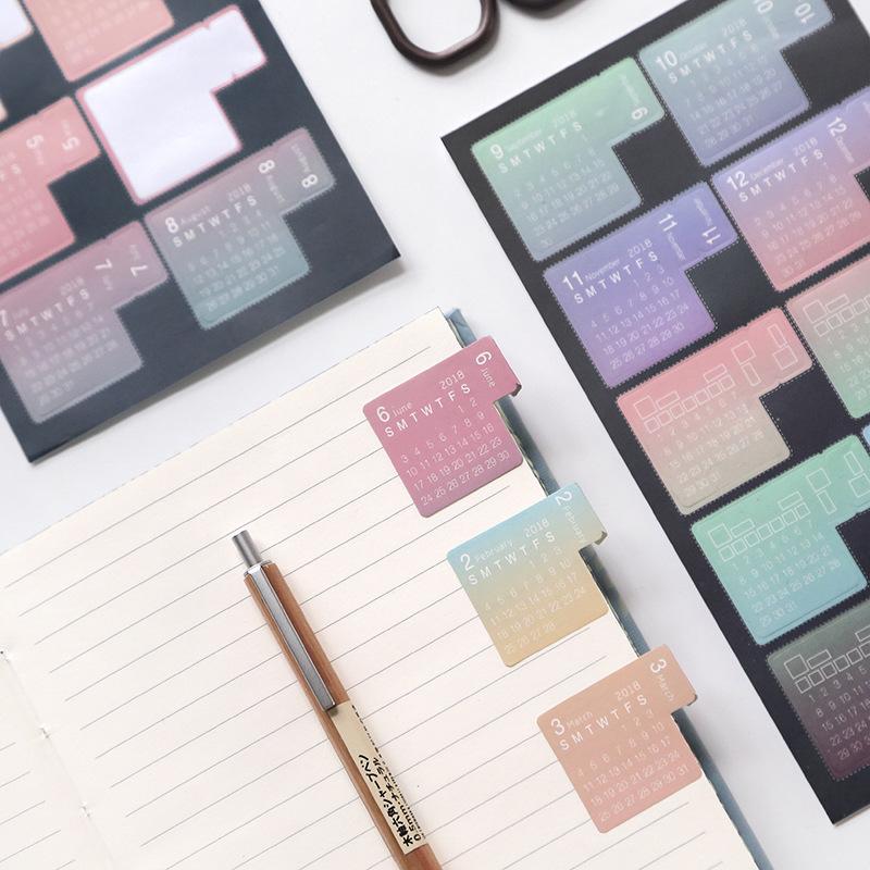 2pcs/set New 2019 year Calendar Sticker Notebook Index Monthly Category Sticker Planner Accessories Slip Sheet Escolar 2019